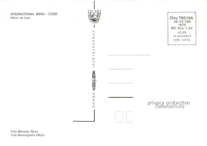 74095680 BRNO Bruenn CZ International Brno Hotel de Luxe postalisch nicht gelaufen Erhaltung siehe scans [WerneD78] KatCode: 11520