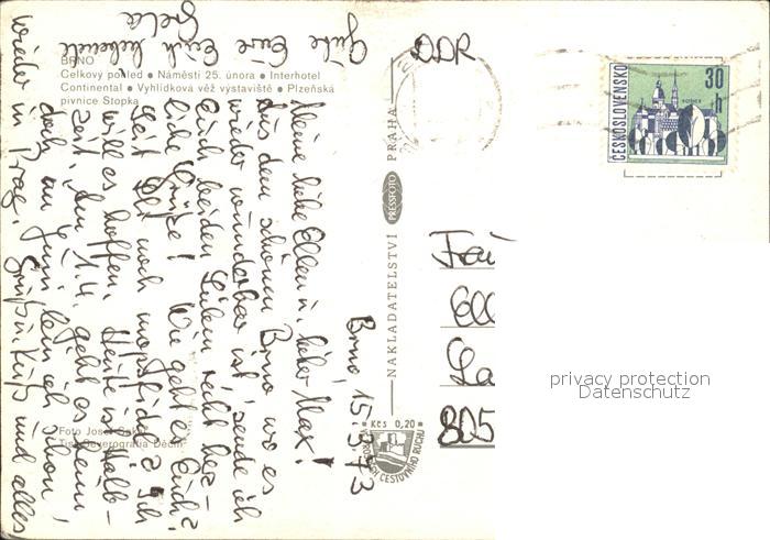 old postcard Brno Bruenn Gesamtansicht Platz Interhotel Continental Plzenska Pivnice Stopka postalisch gelaufen Erhaltung siehe scans