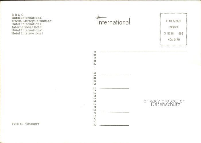 12467670 Brno Bruenn Hotel International postalisch nicht gelaufen Erhaltung siehe scans KatCode: 11520