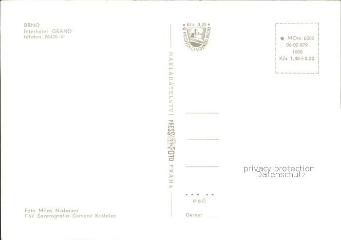 Brno Bruenn Interhotel Grand postalisch nicht gelaufen Erhaltung siehe scans