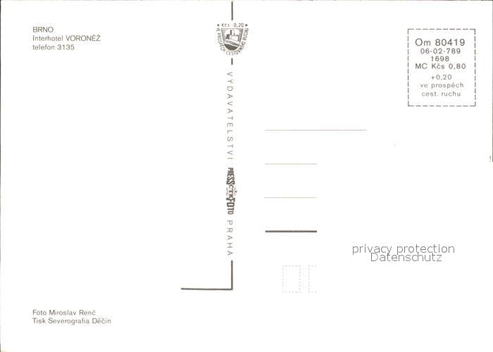 Brno Bruenn Interhotel Voronez bei Nacht postalisch nicht gelaufen