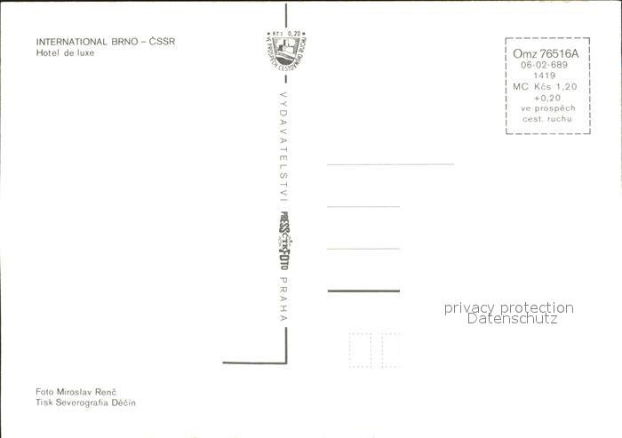 Brno Bruenn International Hotel de luxe postalisch nicht gelaufen Erhaltung siehe scans