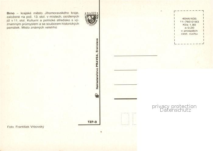 Brno Bruenn Krajske mesto Jihomoravskeho kraje Kulturni a politicke stredisko s vyznamgym pruemyslem a se souborem Misto znamych veletrhu postalisch nicht gelaufen Erhaltung siehe scans [FriedD77]