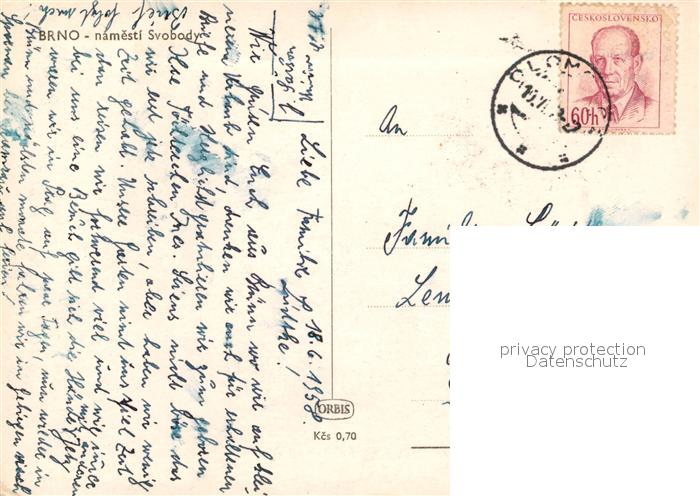 13289408 old postcard Brno Bruenn Namesti Svobody postalisch gelaufen Erhaltung siehe scans [PaolaD17] KatCode: 11520