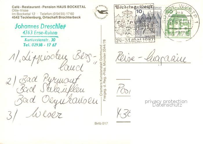 73717676 alte Postkarte Brochterbeck Cafe Restaurant Pension Haus Bocketal Fliegeraufnahme postalisch gelaufen Erhaltung siehe scans [WerneD78] KatCode: 11110005566088