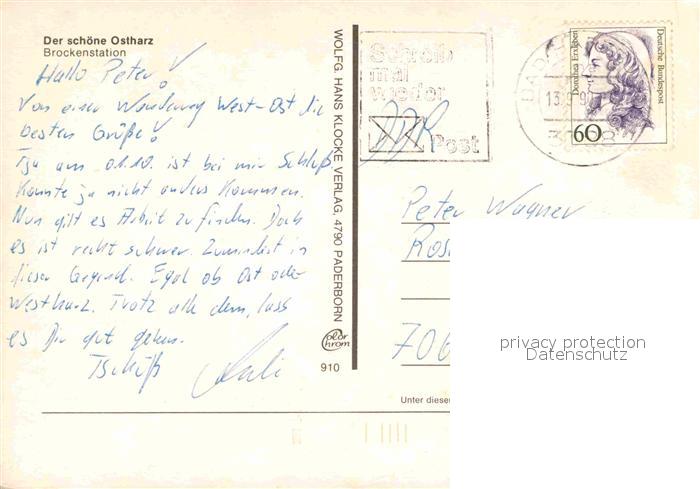 72846081 alte Postkarte Brocken Harz Bahnstation mit Sendetuermen postalisch gelaufen Erhaltung siehe scans [LiesaD40] KatCode: 11110015085370