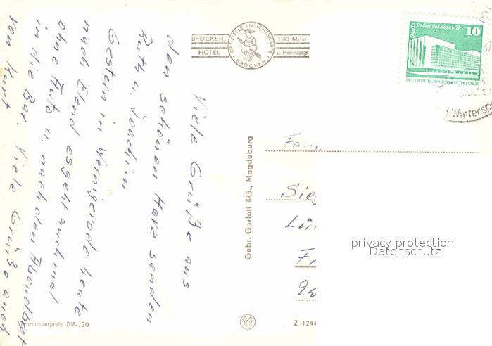 72925060 alte Postkarte Brocken Harz Brocken Hotel postalisch gelaufen Erhaltung siehe scans [WerneD78] KatCode: 11110015085370
