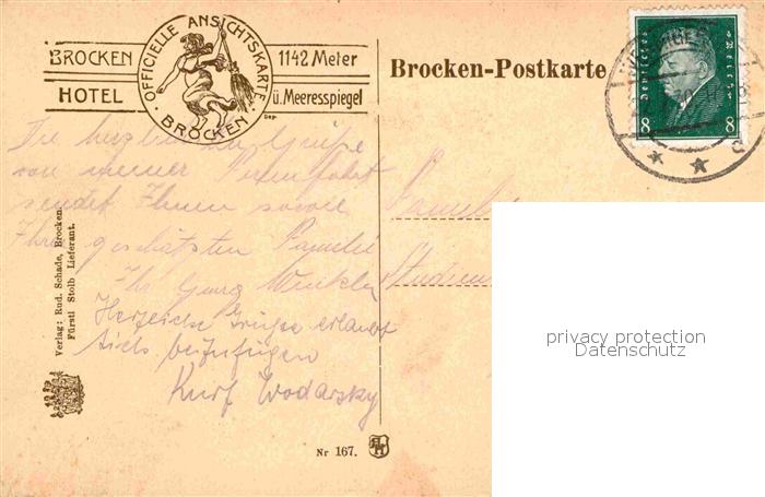 72920071 alte Postkarte Brocken Harz Brocken Hotel postalisch gelaufen Erhaltung siehe scans [WerneD78] KatCode: 11110015085370