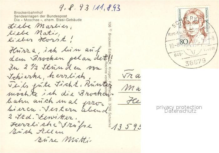 73652097 alte Postkarte Brocken Harz Brockenbahnhof Sendeanlagen der Bundespost Moschee ehemaliges Stasi-Gebaeude postalisch gelaufen Erhaltung siehe scans [FriedD77] KatCode: 11110015085370