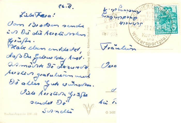 73893156 alte Postkarte Brocken Harz Brockenhotel postalisch gelaufen Erhaltung siehe scans [FriedD77] KatCode: 11110015085370