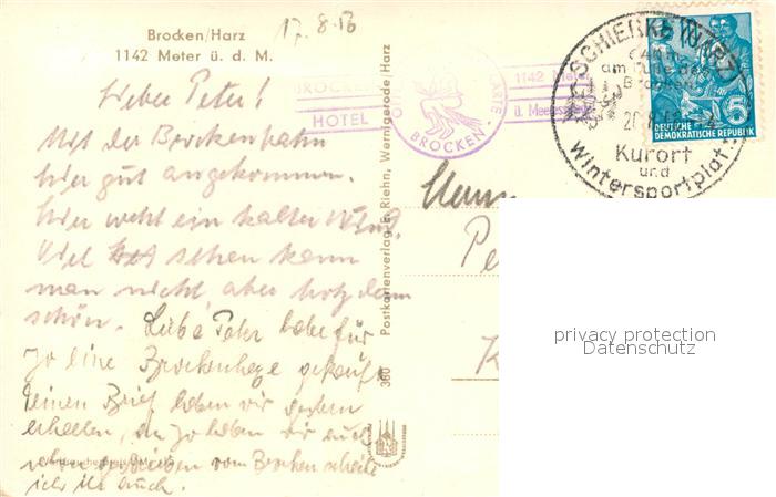73675227 alte Postkarte Brocken Harz Brockenhotel postalisch gelaufen Erhaltung siehe scans [FriedD77] KatCode: 11110015085370