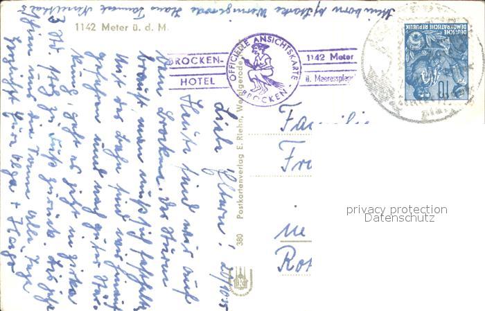 71942270 alte Postkarte Brocken Harz Brockenhotel im Harz postalisch gelaufen Erhaltung siehe scans KatCode: 11110015085370
