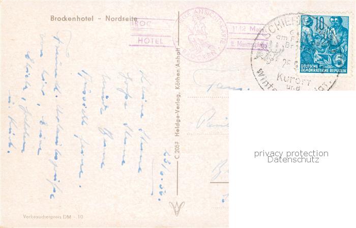 73806842 alte Postkarte Brocken Harz Brockenhotel Nordseite postalisch gelaufen Erhaltung siehe scans [WerneD78] KatCode: 11110015085370