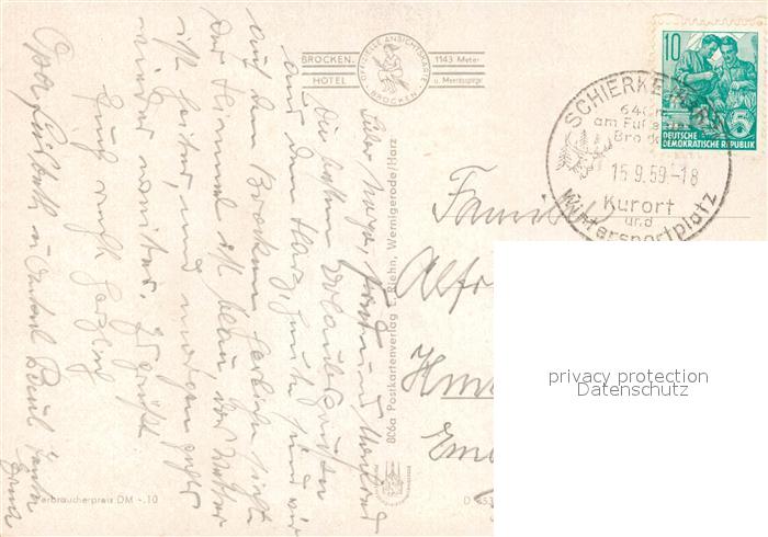 73167087 alte Postkarte Brocken Harz Brockenhotel Wetterwarte postalisch gelaufen Erhaltung siehe scans [WerneD78] KatCode: 11110015085370