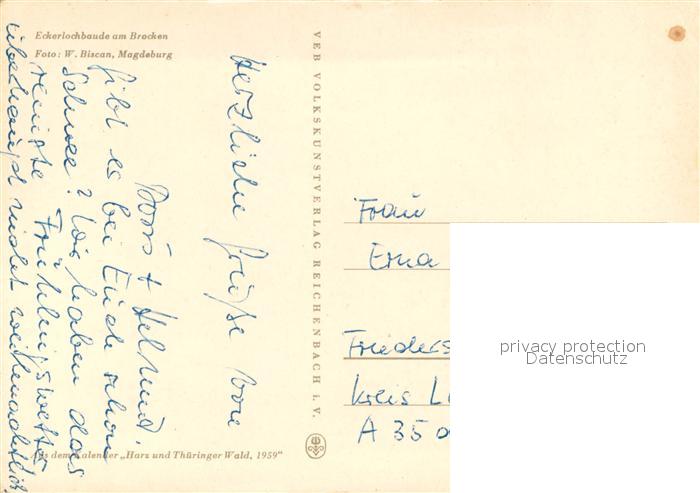 73686648 Brocken Harz Eckerlochbaude am Brocken im Winter Kalender Harz und Thueringer Wald postalisch nicht gelaufen Erhaltung siehe scans [FriedD77] KatCode: 11110015085370