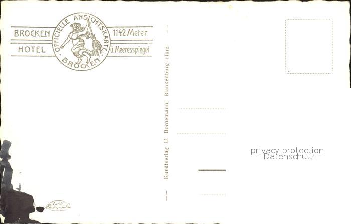 72035255 Brocken Harz Hotel postalisch nicht gelaufen Erhaltung siehe scans KatCode: 11110015085370