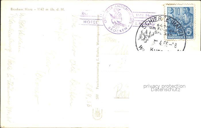 72400483 alte Postkarte Brocken Harz Hotel postalisch gelaufen Erhaltung siehe scans KatCode: 11110015085370