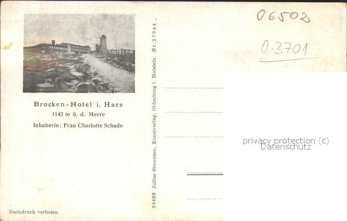 41418277 Brocken Harz Hotel Charlotte Schade Landkarte vom Harz KatCode 11110015085370