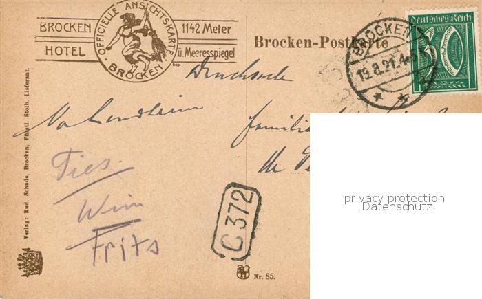 73559046 alte Postkarte Brocken Harz Hotel mit Botanischem Garten Observatorium postalisch gelaufen Erhaltung siehe scans [LiesaD40] KatCode: 11110015085370
