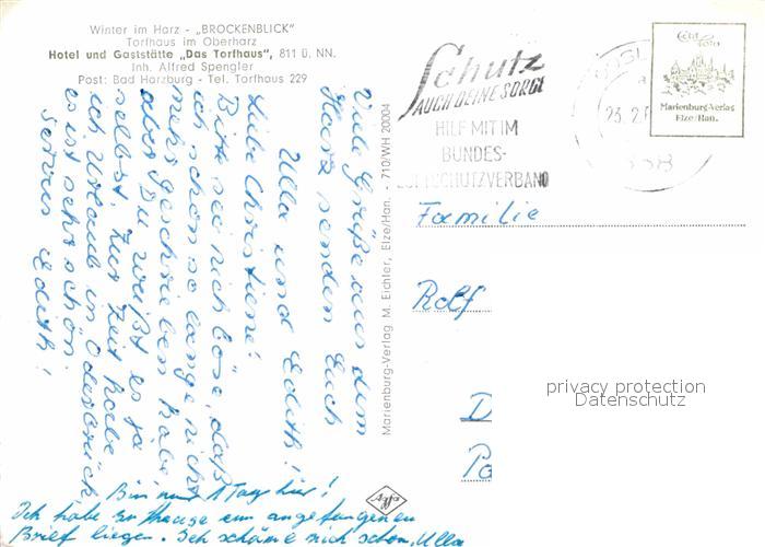 72642655 alte Postkarte Brocken Harz Hotel und Gaststaette Das Torfhaus postalisch gelaufen Erhaltung siehe scans [WerneD78] KatCode: 11110015085370