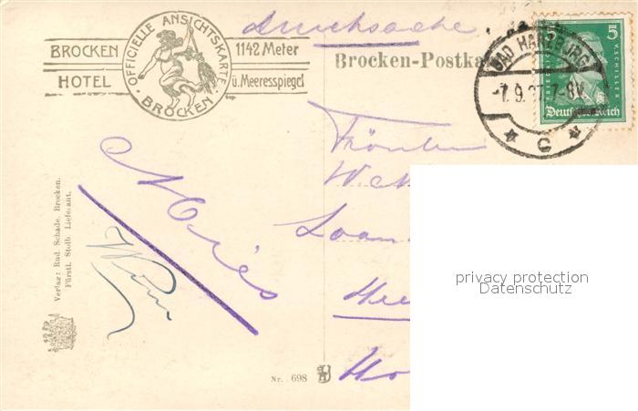 73559045 alte Postkarte Brocken Harz Hotel postalisch gelaufen Erhaltung siehe scans [LiesaD40] KatCode: 11110015085370