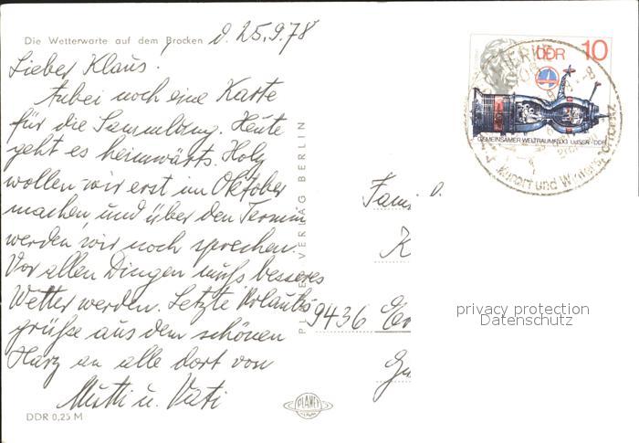 72275372 alte Postkarte Brocken Harz Wetterwarte postalisch gelaufen Erhaltung siehe scans KatCode: 11110015085370