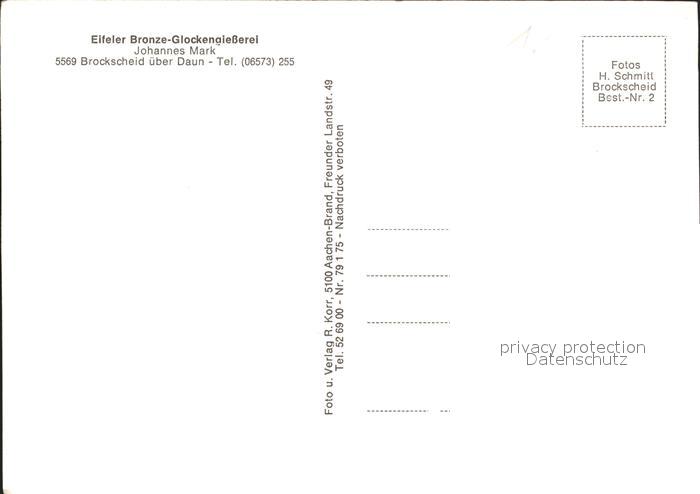 72299986 Brockscheid Eifeler Glockengiesserei postalisch nicht gelaufen Erhaltung siehe scans KatCode: 11110007233011