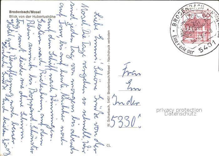 72578593 alte Postkarte Brodenbach Blick von der Hubertushoehe postalisch gelaufen Erhaltung siehe scans [LiesaD40] KatCode: 11110007137205