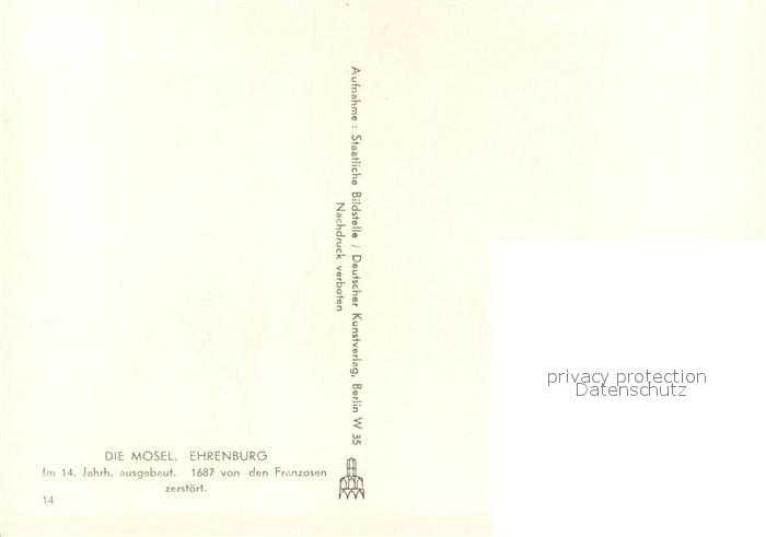 73622787 Brodenbach Die Ehrenburg postalisch nicht gelaufen Erhaltung siehe scans [WerneD78] KatCode: 11110007137205