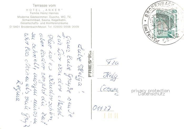 73172858 alte Postkarte Brodenbach Hotel Anker Mosel postalisch gelaufen Erhaltung siehe scans [LiesaD40] KatCode: 11110007137205