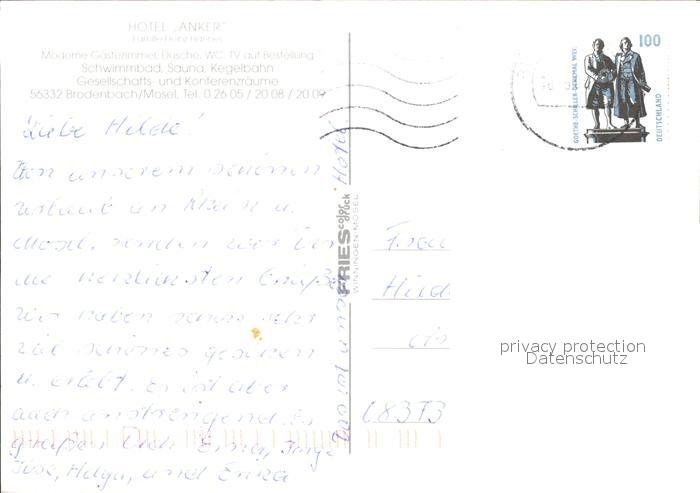 71931274 alte Postkarte Brodenbach Hotel Anker Schiff postalisch gelaufen Erhaltung siehe scans KatCode: 11110007137205