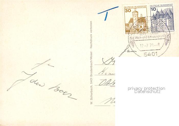 73311426 alte Postkarte Brodenbach Kriegerdenkmal Ehrenburg Ehrbachklamm Jugendherberge postalisch gelaufen Erhaltung siehe scans [KathaD81] KatCode: 11110007137205