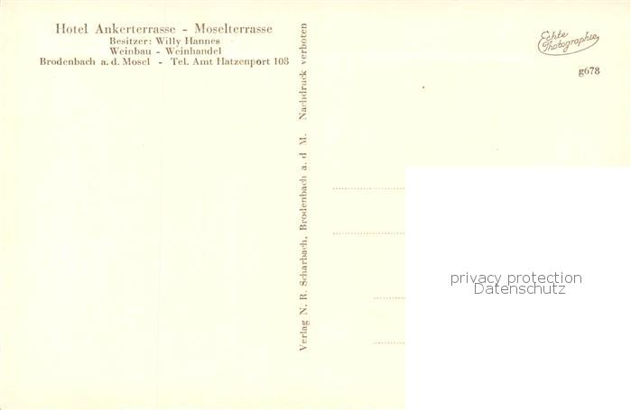 73820545 Brodenbach Mosel Hotel Anker Terrasse postalisch nicht gelaufen Erhaltung siehe scans [WerneD78] Wern Katcode 11110007137205