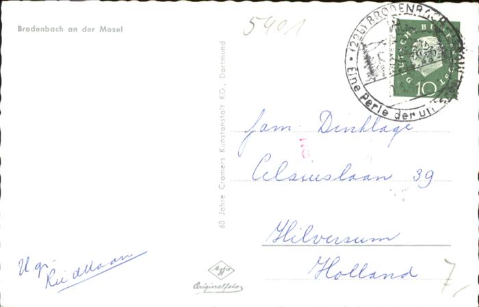 40926000 Brodenbach Mosel Rheinland-Pfalz postalisch gelaufen Alte Ansichtskarte Postkarte alte Postkarte Katcode 11110007137205