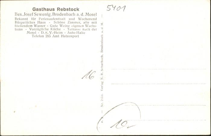 40927234 Brodenbach Mosel Rheinland-Pfalz Gasthaus Rebstock postalisch nicht gelaufen Alte Ansichtskarte Postkarte Katcode 11110007137205