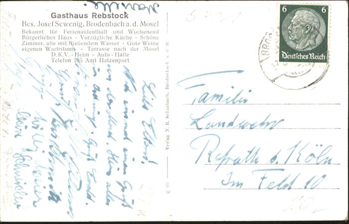 40931354 Brodenbach Mosel Rheinland-Pfalz Gasthaus Rebstock postalisch gelaufen Alte Ansichtskarte Postkarte alte Postkarte Katcode 11110007137205