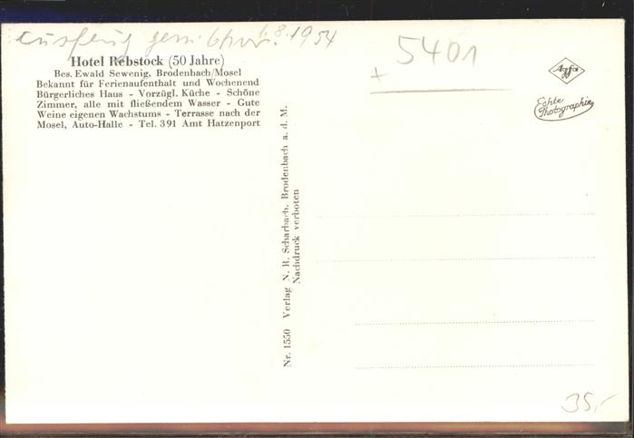 41049856 Brodenbach Mosel Rheinland-Pfalz Hotel Rebstock postalisch nicht gelaufen Alte Ansichtskarte Postkarte Ulri Katcode 11110007137205