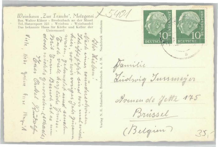 40666516 Brodenbach Mosel Rheinland-Pfalz Weinhaus Traube postalisch gelaufen Alte Ansichtskarte Postkarte alte Postkarte Katcode 11110007137205