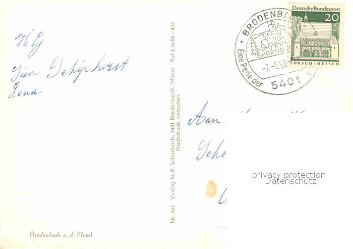 72655106 alte Postkarte Brodenbach Moselpartie postalisch gelaufen Erhaltung siehe scans [LiesaD40] KatCode: 11110007137205