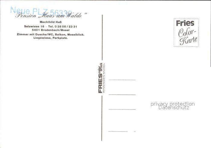 72428124 Brodenbach Pension Haus am Walde postalisch nicht gelaufen Erhaltung siehe scans KatCode: 11110007137205