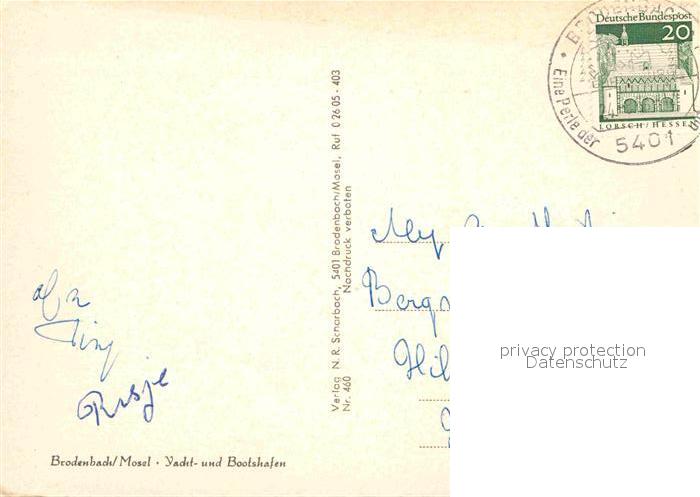 72653705 alte Postkarte Brodenbach Yacht- und Bootshafen postalisch gelaufen Erhaltung siehe scans [LiesaD40] KatCode: 11110007137205