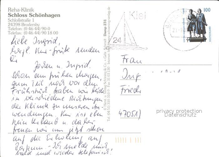 72574010 alte Postkarte Brodersby Schlei Reha-Klinik Schloss Schoenhagen postalisch gelaufen Erhaltung siehe scans [LiesaD40] KatCode: 11110001058032