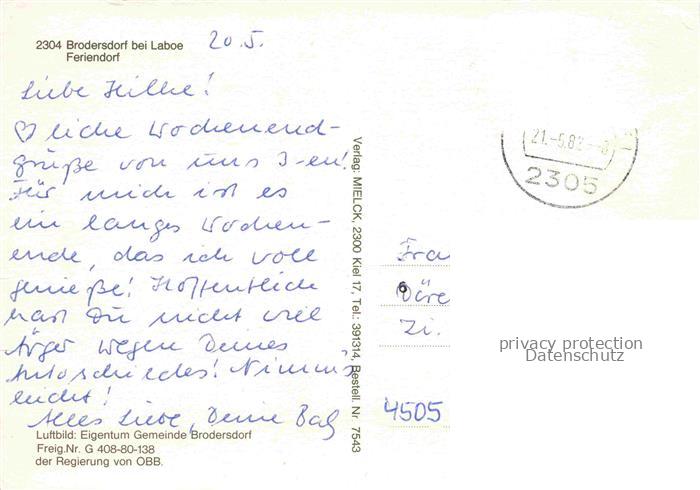 74096014 alte Postkarte Brodersdorf Fliegeraufnahme Feriendorf postalisch gelaufen Erhaltung siehe scans [WerneD78] KatCode: 11110001057012