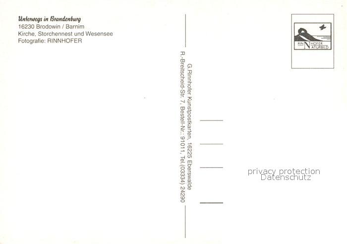 73179096 Brodowin Kirche Storch Storchennest Landschaftspanorama Wesensee postalisch nicht gelaufen Erhaltung siehe scans [FriedD77] KatCode: 11110012060045