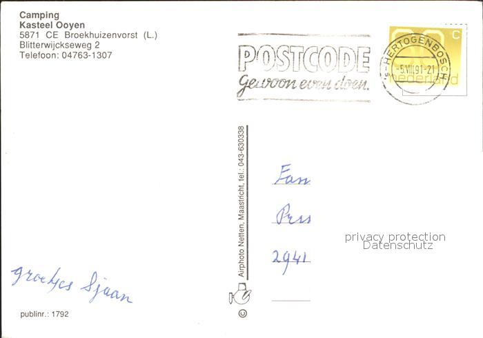 old postcard Broekhuizenvorst Camping Kasteel Ooyen Fliegeraufnahme postalisch gelaufen Erhaltung siehe scans