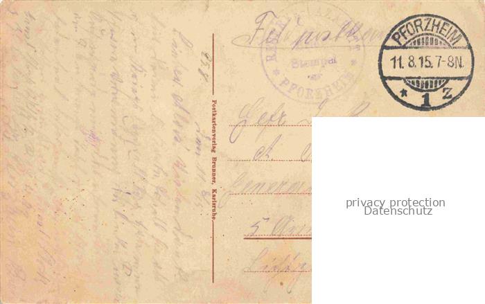 74058999 alte Postkarte Broetzingen PFORZHEIM Partie am Marktplatz postalisch gelaufen Feldpost – Stempel Erhaltung siehe scans [FriedD77] KatCode: 11110008231000