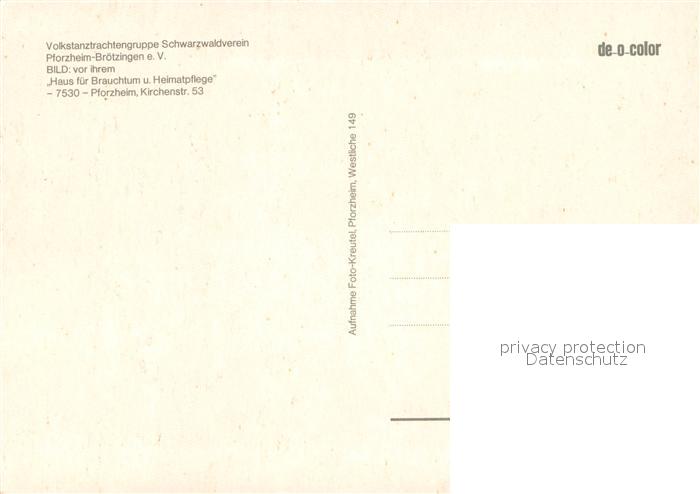 73738983 Broetzingen Volkstanztrachtengruppe Schwarzwaldverein Pforzheim-Broetzingen Haus fuer Brauchtum postalisch nicht gelaufen Erhaltung siehe scans [WerneD78] KatCode: 11110008231000