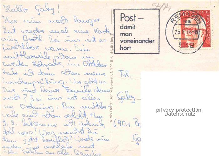 74050159 alte Postkarte Brohl-Luetzing Rheinpartien postalisch gelaufen Erhaltung siehe scans [WerneD78] KatCode: 11110007131014