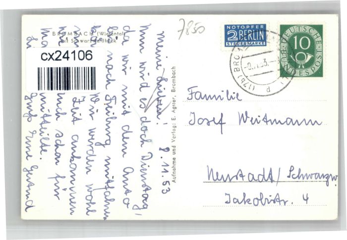 30752838 alte Postkarte Brombach Loerrach postalisch gelaufen KatCode: 11110008336050