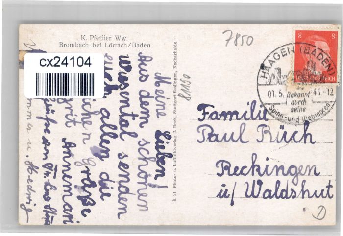 30752836 alte Postkarte Brombach Loerrach postalisch gelaufen KatCode: 11110008336050